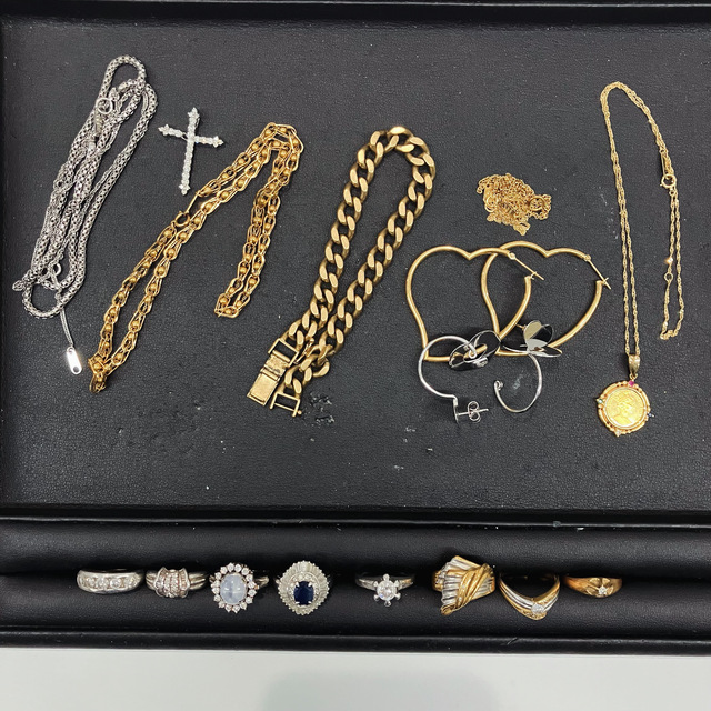 当店では、付属の宝石やデザイン性、ブランドジュエリーなど、本来なら査定対象にならへん部分も含めて、「製品としての価値」を上乗せして査定させてもらいます。ゴールドバーやプラチナバーはもちろん、金縁メガネや金歯も高価査定の対象です。